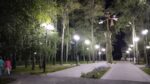 После проведенных здесь работ по благоустройству сквер просто сияет, но людей практически нет. Возможно, сказывается отдаленность от многоэтажек этой территории, а возможно, не столь уж безопасной она кажется даже при таком обильном освещении.