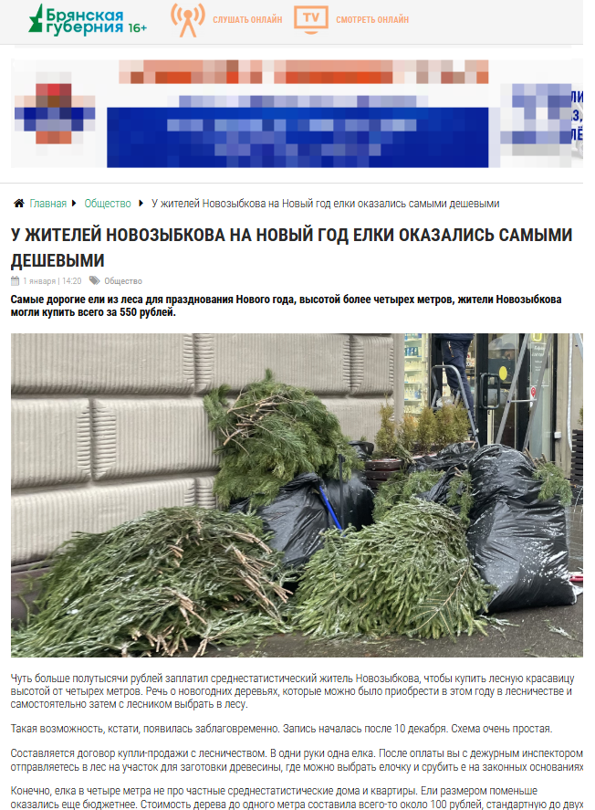 Самые дорогие ели из леса для жителей Новозыбкова стоили не более 550 рублей