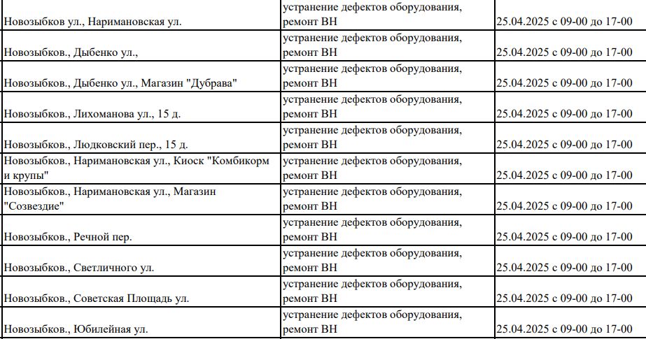 В Новозыбкове намечены работы по электросетям. Возможны отключения электричества