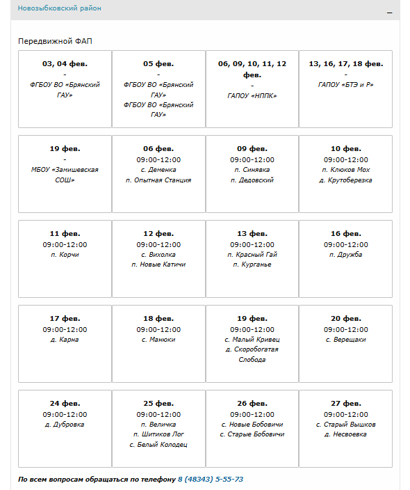 График работы передвижных ФАПов на территории всей Брянской области на ФЕВРАЛЬ можно увидеть по ссылке:
