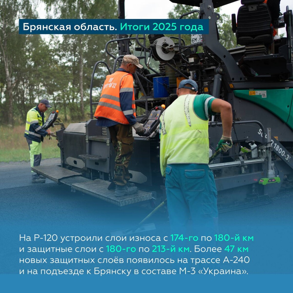 Так, восстановили дорожную одежду на 8 км Р-120 в Орловской области, устроили защитные слои на участках Р-120, А-240, на подъезде к Смоленску в составе А-132, на соединительной дороге к Малоярославцу.