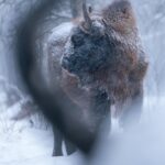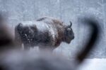«В Брянском Лесу есть одна очень вредная альфа-зубриха, именуемая за свою вредность Черномордая. Она никого не любит, а особенно — фотографов. Как увидит фотографа, так и норовит его боднуть в объектив. Ну а если не получилось, то хотя бы заслонить рогами всех остальных. Вот и приходилось снимать через рога, будто бы это такой художественный прием :)».